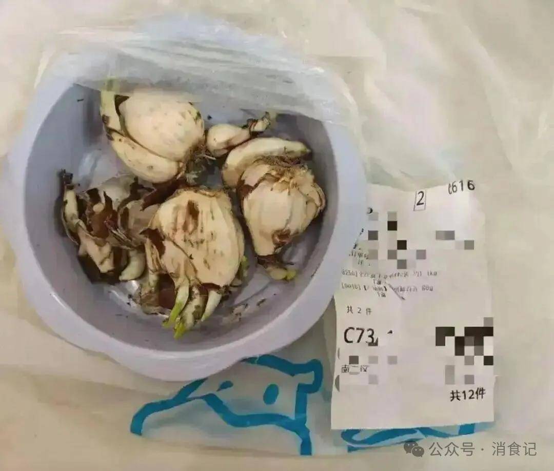 水仙球取鲜百合的外不雅高度类似是事务间接诱因。两者均为白色鳞片状球茎,未抽芽的水仙球取鲜百合难以区分。水仙球外层裹着棕褐色干涸膜皮,形似独头洋葱,而鲜百合则由瓣状鳞片拼接而成,裂缝较着。但盒马配送的水仙球包拆存正在严沉缺陷:通明包拆盒侧面仅以不显眼标签标注“水仙”,白叟因老花眼未能察觉!